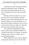 sniper’s range. As he took off, his men opened fire at the gunman to, in turn, draw his fire. Still, Randall could hear the bullets whizzing past. At one point he tripped, and it likely saved his life as a bullet missed a direct hit, and instead only tore a bloody gash in his arm. The pain momentary dazed him, but the thought of a promise he had made gave determination to continue. When Germany had invaded France, he and his family had been over from America to visit his relatives. He placed his wife and son on a ship back to America, and then joined the French resistance. Before he had, he had promised his young son, who was barely 10, that he would return. Knowing his family was safe in America brought him peace, and his promise gave him perseverance during all the long years of fighting and the two years he had spent as a prisoner of war. Once the American and British forces had liberated the prison camp he was interred in, he joined the American forces to try to put a final end to the conflict. He and his small group of men had been sent on a reconnaissance mission to verify that this small 20