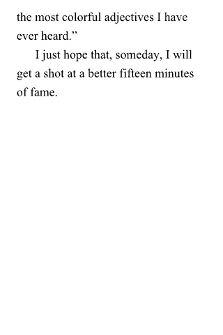 the most colorful adjectives I have ever heard.” I just hope that, someday, I will get a shot at a better fifteen minutes of fame.