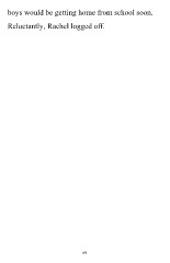 boys would be getting home from school soon. Reluctantly, Rachel logged off. 69