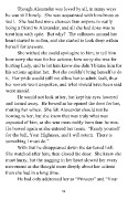Highness”. She knew that was what her father meant when he said Alexander needed to learn his place, but somehow it was all wrong. For weeks he had ridden with her - had been there to escort her, even though she had harassed him. Yet he almost always called her Louise, and had since they were children. “Louise” sounded so warm and friendly when he said it, and she had not realized how much she liked it. But “Princess”, or “Your Highness”, sounded so cold and detached. But wasn’t that what she wanted? Hadn’t she tried all these years to crush him, to destroy his confidence; to, in essence, turn him into nothing but a lowly servant? Her heart quivered at the realization that, in that moment, what her father had accomplished with Alexander was what she had been truly trying to do for years. And now she didn’t want it. She wondered if she would ever hear him address her by her name again. She shed her dirty clothes and filled a wash basin. She scrubbed thoroughly, rinsing her hair twice to get all of the grime out. She had no sooner donned a new dress, than there was a knock at the door. She opened it just a crack. There stood Alexander. Opening the door wider, she motioned him in. He still would not look at her directly, but kept his eyes lowered and averted. He again bowed and pulled from his coat a flask and a small, stuffed pillowcase. “I got you some food, Your Highness.” His bowing and calling her “Your Highness” made 55