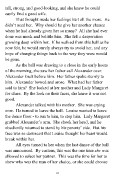 no one at all. If she chose someone, that man could then be her escort. Sir Phillip stood conspicuously near her parents, sure that she would come to him. She knew who she wanted to dance with, but she feared how he might respond. Had his heart been so battered that he would have difficulty reacting positively to her? What would her father think? What would everyone think? Wouldn’t it just be easier to choose no one? But choosing no one was still a choice. She thought of Alexander taking her father’s anger in her stead. Then, for no explainable reason, her mind wandered back to that day on the mountain. She could almost feel Nell’s arms around her neck and the kiss on her cheek. She remembered Alexander and the children. She thought of him giving her his food and going hungry himself, as he was even now. Suddenly, tears came to her eyes, and she didn’t care what anyone else thought. She walked right past Sir Phillip, whose smile quickly faded. She proceeded right past her shocked father and past her mother. She boldly passed Duke Reginald and Lady Margaret and stopped in front of Alexander. There was an audible gasp in the hall, and a groan from her father. Alexander slowly raised his eyes to meet hers. She held out her hand to him and smiled. He stood as if in shock for what seemed like the longest time, and slowly, ever so slowly, but just as surely, he smiled back at her. She could see a sparkle of tears form in the corner of his eyes as he gently took her hand in his. He escorted her to 62