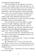 She looked up at him. “Even if I am awful and stupid?” He shook his head. “Another person’s actions should never dictate my own. Besides, I will never forget this night, and I thank you for it.” She nodded and smiled weakly, thinking about how unkind she had been. “I’m just glad we could be friends.” His voice quivered as he replied. “I just wish it could have been longer.” Something in the way he said it struck fear into her heart. What did he mean? Something was definitely wrong. He held out the lamp to her. “Here, you take this. I will be fine getting back to my room.” He turned to leave, but she reached out and grabbed his arm. “Alexander, what is it?” He turned back, but did not look at her directly. “Like it, or not, you got your wish of having me out of your life. Your father has asked Sir Phillip to be your escort from now on. He has commanded me to leave for military training by noon. He said, after last night’s events, he wanted someone better to be your escort. He said now that you are eighteen, he wants...” Alexander paused, choking back the emotion in his voice before he continued. “He wants someone more worthy of you.” With that, he looked into her eyes, smiled sadly, reached out and kindly touched her face, and was quickly gone into the shadows of the night. 67