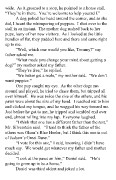 “I’m sure it would cost a fortune to feed him,” my mother added, agreeing with Daniel. However, at the mention of a Great Dane, I had seen that look come over my dad’s face. “Oh, it won’t be that bad,” he said. “We always have some old milk at the barn, and he can eat a few table scraps now and then.” “With the size of him, maybe we could just tie him to the manger and feed him hay,” John, my oldest brother, suggested. “And saddle and ride him,” Daniel added. My dad picked the puppy up and looked at it. “Sure enough, it’s a male,” he announced. I’m not sure how a person tells those kind of things. I think it is written on the underside somewhere, kind of like all of my toy cars that Albert tells me say “Made in Taiwan” underneath. I picked the dog up to look to see where the writing was, but I didn’t see any. Everyone laughed at me for trying. I’m sure it was because they knew I can’t read. But it didn’t matter. I had a dog. Mr. Silverstein rounded us up a box to put the pup in. I got to hold it on my lap all the way home. As we drove, we had to decide on a name. “How about Rufus?” Mary, my oldest sister, suggested. “Rufus is a good dog’s name.” “That would be good,” Daniel chimed in. “That way we could call him Doofus for short.” I couldn’t see how Doofus was short for Rufus, but I didn’t like the idea of naming my dog that. “I don’t like Rufus,” I complained. “Look at his four white paws,” Josie, my second sister, said. “Maybe we could call him Mitsy, since he’s