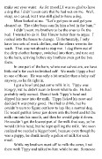 brought him out a few scraps of food from the house, and he ate that, too. Pretty soon he was so full he couldn’t move. He looked like a milk can on sticks. In fact, he ate so much he got a stomach ache. “It looks like he’s foundered,” Daniel said, looking at Tippy, who laid there groaning while I stroked his head. But in an hour, Tippy was back up and ready to play. As Tippy grew over the next few weeks, he seemed somewhat confused. He apparently thought he was a calf, since he was raised with the calves. But I think he thought he was a special calf because I would take him places with me. When we let the calves out into a pen to romp, they would bunt each other. Tippy tried to bunt heads with a calf, but when their heads hit, Tippy toppled end over end. He was daffy for at least a day. Dogs don’t have thick, skull-butting kinds of heads. It wasn’t long before something else happened, and we realized we had to move him. One of our old cows had slipped in the barn, and was having trouble walking. My dad decided we would use her for a nurse cow. We would get her into a pen every day when it was time to milk, and turn some calves in on her. Tippy thought he was a calf, so it was only natural that one day he decided it was his turn to nurse. He worked his way through into the pen and got into position. The cow wasn’t paying any attention, as she was chewing the grain we had given her, but when Tippy latched on, she knew immediately that something was wrong. Calves only have bottom teeth in the front of their mouths when they are born. I know this because, after they are fed, I like to hold out my hand and let the calves suck