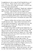 on it. It’s a gooey, tickley feeling. However, Tippy, being a dog, had both top and bottom teeth, and when he latched on, he really latched. The cow, like my dad would say, wound up like a soccer player, with the intent of kicking Tippy into the middle of the next week. When she released, she hit him square in the backside. Tippy had a good hold, though, and he flipped upside down as he flew through the air with his teeth still clenched shut. The cow’s udder stretched out like a giant rubber band, and then, with a sudden pop, Tippy snapped off and slammed into the wall. The cow spun around to face him, eyes on fire, knocking calves all over the place, as she did a buckin’ bronco hop and kick. I could see that she planned to kill Tippy, and, with one quick jump, I was in the pen with a stick to turn the cow back around. No cow was going to mess with my dog! Tippy just lay on the ground, the breath knocked out of him. I gathered him in my arms and dragged him out of the pen, since he was too big for me to carry. The cow eyed us suspiciously. Tippy hasn’t tried to sneak a free snack from any cow since then. He is pretty lazy anyway, so he is happy to just let someone bring his food to him.