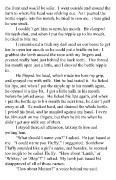 I turned around to see Daniel. “Why Mutton?” I asked. “Because mutton is a sheep roast.” “No!” I hollered. “This is my lamb, and he’s not going to be a roast!” Daniel looked disgusted. “Fat chance.” “Mr. Brown calls him Burr Magnet,” I told him. Daniel smiled at that. His smile widened when he saw my lamb’s ears wedged against the cinder blocks. “How did he get his head stuck?” “He was trying to escape. Can you help me get him out?” “Sure. I’ll just go get a saw and we’ll cut his head off.” I shook my head and tried to act brave, even though I couldn’t think of any other way to get him free. Daniel must have been teasing though, because he laughed. He petted my lamb. “You’re sure a cute little guy. But you’ve got to be careful sticking your nose into places it doesn’t belong.” Suddenly Daniel’s face lit up. “That’s it! We can call him Nosey.” I didn’t like that name, but I had to admit it fit. So Nosey it was. Daniel ran his hand along Nosey’s head. “Now, let’s see if we can get you out of there, little feller.” He gently pulled Nosey’s head forward with one hand, and then, with the other, he tucked Nosey’s ears against his neck. He then pushed Nosey’s head back through the wall, and the lamb was free. “Why don’t you go get him another bottle of milk while I get the cows in?” Daniel suggested. Mom fixed another bottle, and I hurried back to the