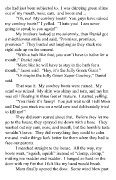 me and Mom took a quick step back. I started to step in and she stepped back into the doorway, blocking my path. “Oh, no, you don’t, young man. You are not putting one foot in this house smelling like that. Where in the world have you been?” I looked at my torn and dirty clothes, caught a whiff of my own smell, and with what little pride I had left, said, “Jason and Daniel tried to kill me by making me ride the orneriest, toughest cow in the whole herd.”