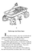 piles of snow. With most of the snow now gone, this snow was more valuable. It was fun to get a snowball and sneak up on someone and let them have it. I grabbed a big chunk of ice to suck on off of an old combine as I crossed the pasture. Jason told me I shouldn’t suck on them because birds pooped on the machinery, and the water washing off is what formed the icicles. He thinks just because I am young I will believe anything. I couldn’t see any bird poop in the ice. There was a meadow that looked like a big lake of yellow where the flowers grew. I ran out into the middle of it and took a deep breath. Besides the flowers, I could also smell the mint that grew along the ditch banks. I closed my eyes and enjoyed the smells. Soon I had filled the whole wagon full of yellow buttercups and dandelions. I knew I should start back, but the perfume of the flowers and warmth of the sun made me sleepy, and I wanted to lie down. I flopped down on my back, and watched the clouds rolling a picture show across the giant blue sky. Tippy chased butterflies not too far away, and I could hear the munch, munch of Nosey eating grass by my feet. The world became quieter and quieter. Suddenly, I felt a blast of warm air, and a slimy drizzle on my face that made me gag. As I awoke, a cow scraped her rough tongue across my face. I screamed, and the cows scattered, bellowing and stumbling. They tipped over my little red wagon, as they headed to the far side of the pasture as a thundering herd. The sun was no longer straight overhead, and I was hungry. I set my little red wagon upright, gathered up the flowers, and put them back in. Someone called my name.
