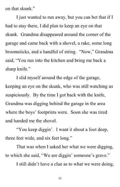 skunk. Grandma disappeared around the corner of the